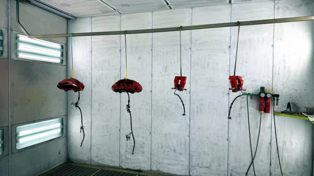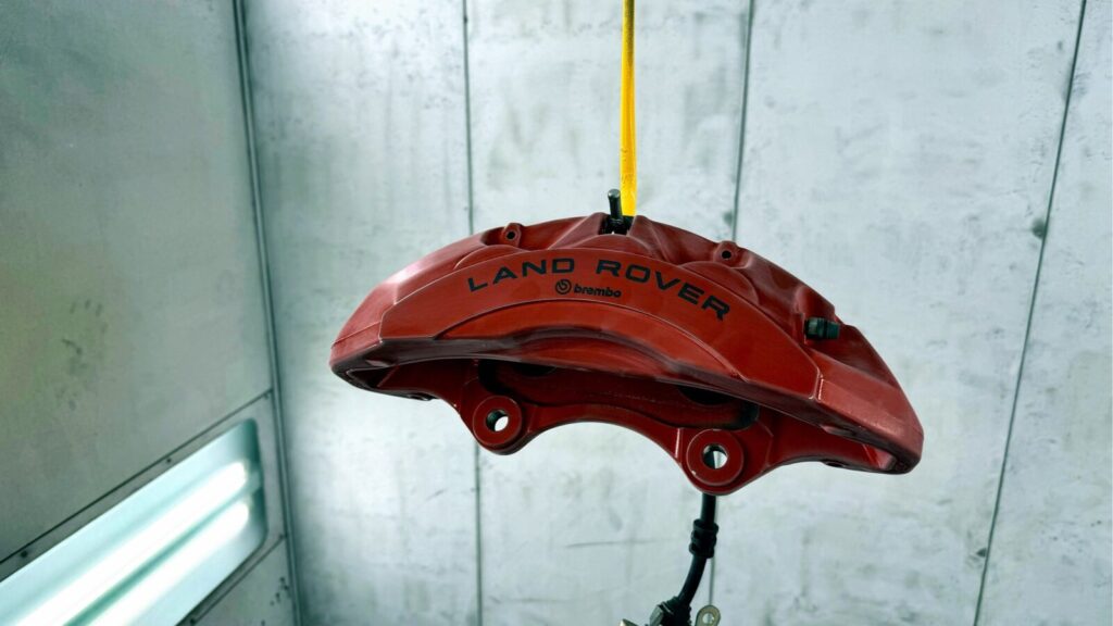 さっそく作業も進んでおりリフトにかけてキャリパーをペイント!