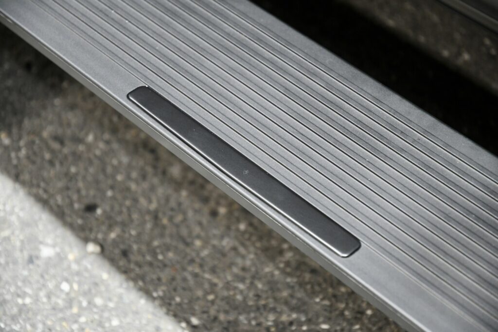 電動ステップの側面にはステンレスパネルのアクセントがありましたがその部分にもフィルムを張りました(`・ω・´)ゞ